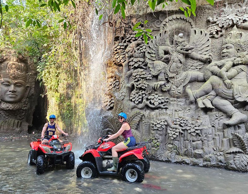 - Start with pickup before heading to Ubud. Following a safety briefing, gear up with all the equipment needed for a safe journey. Choose to either ride in tandem with a companion or drive your own ATV for a thrilling solo ride.