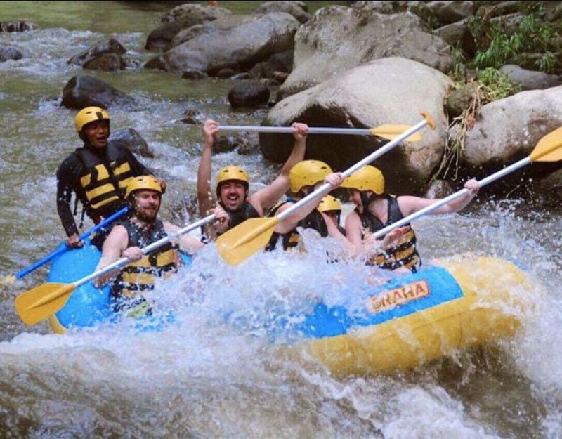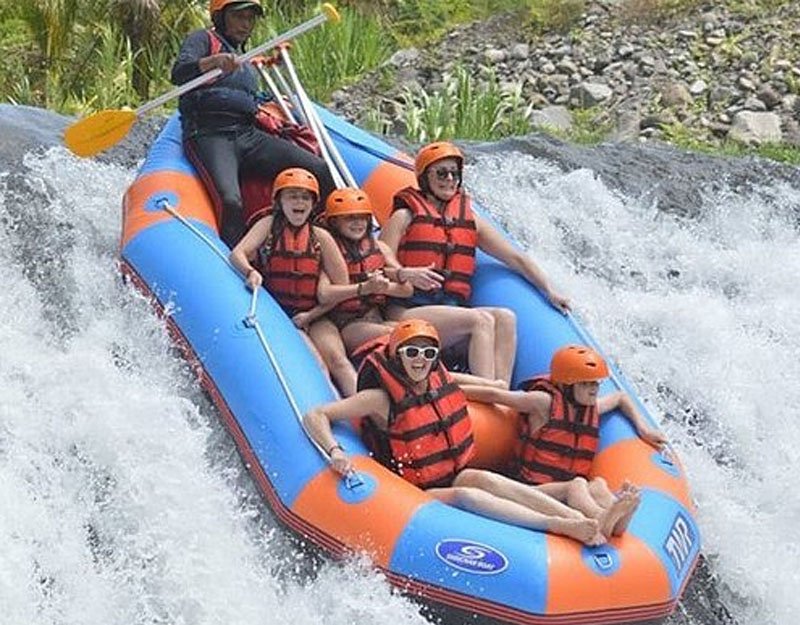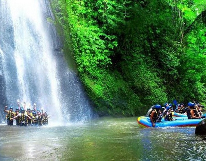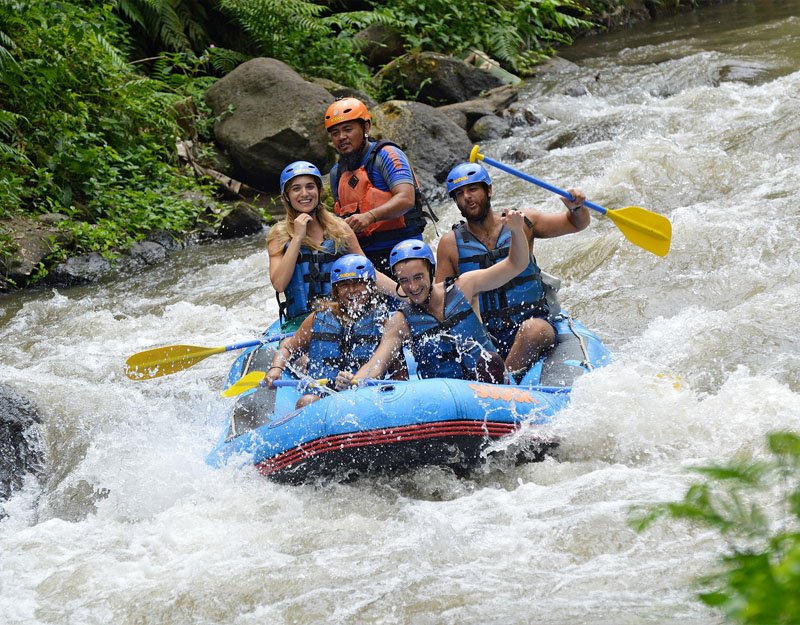 - Then freshen up with a shower before heading to the next activity. Hop in a raft and enjoy 2.5 hours on the Ayung River. Discover sweeping views of the green jungle and waterfall along the river.